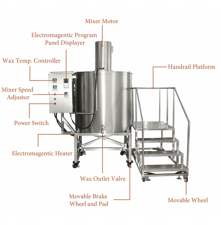 Keywords: 500L vertical electromagnetic heating wax melting equipment, space-saving vertical design, workshop space utilization
