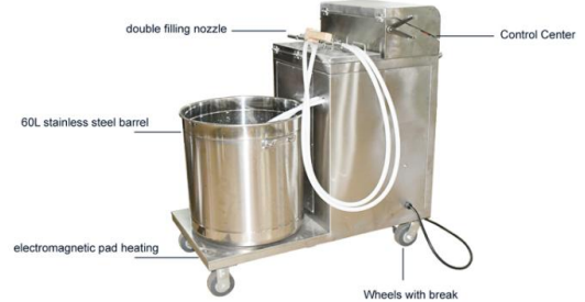 The machine is combine filling part and warming part with 60L filling tank to change color and fragrance convenient.